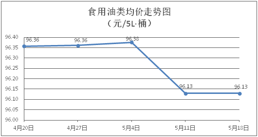 食用油類商品價格微幅波動。所監(jiān)測的9種食用油(5L裝)商品價格波動情況為4漲4跌1平,綜合零售均價為每桶96.13元,環(huán)比下降0.001%。其中:金龍魚花生油、玉米油零售均價為每桶102.12元、76.24元,環(huán)比分別下降0.23%、上漲0.05%。