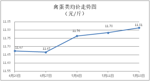 禽蛋類商品價格微幅上漲。所監(jiān)測的5種禽蛋類商品價格波動情況為2漲1跌2平,綜合零售均價為每斤11.81元,環(huán)比上漲0.25%。其中:白條雞、白條鴨零售均價分別為每斤20.72元、15.31元,環(huán)比分別上漲0.44%、上漲0.46%;雞蛋、鴨蛋零售均價分別為每斤6.64元、7.19元,環(huán)比分別下降0.15%、持平。