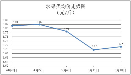 水果類商品價格窄幅盤整。所監(jiān)測的6種水果商品價格波動情況為2漲1跌3平,綜合零售均價為每斤6.71元,環(huán)比上漲0.22%。其中橙子、香蕉、梨零售均價分別為每斤6.35元、3.41元、5.39元,環(huán)比分別上漲0.95%、上漲1.19%、下降0.19%。