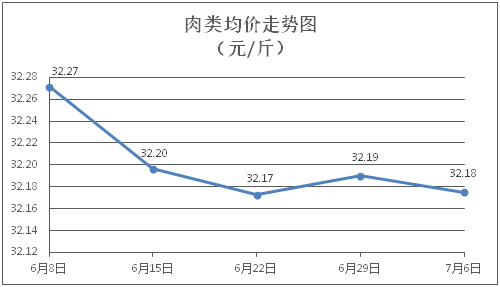 肉類商品價格微幅盤整。所監(jiān)測的8種肉類商品價格波動情況為3漲4跌1平,綜合零售均價為每斤32.18元,環(huán)比下降0.05%。其中:排骨、精瘦肉、肋條肉、牛肉、帶骨羊肉零售均價分別為每斤30.20元、18.94元、15.84元、46.68元、42.21元,環(huán)比分別上漲0.17%、下降0.05%、上漲0.13%、下降0.04%、下降0.40%。