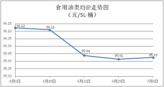 食用油類商品價格穩(wěn)中微調(diào)。所監(jiān)測的9種食用油(5L裝)商品價格波動情況為1漲1跌7平,綜合零售均價為每桶95.93元,環(huán)比上漲0.01%。其中:金龍魚花生油、玉米油零售均價為每桶102.83元、76.18元,環(huán)比分別上漲0.16%、下降0.08%。