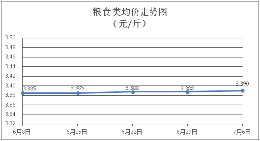 糧食類商品價格基本平穩(wěn)。所監(jiān)測的4種糧食類商品價格波動情況為1漲3平,綜合零售均價為每斤3.390元,環(huán)比上漲0.07%。其中:珍珠米、面粉零售均價分別為每斤3.10元、3.40元,環(huán)比分別上漲0.32%、持平。