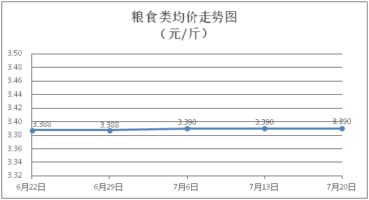 糧食類商品價格保持穩(wěn)定。所監(jiān)測的4種糧食類商品價格均持平,綜合零售均價為每斤3.390元。其中:珍珠米、面粉零售均價分別為每斤3.10元、3.40元,環(huán)比均持平。