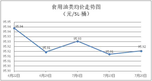 食用油類商品價格基本平穩(wěn)。所監(jiān)測的9種食用油(5L裝)商品價格波動情況為1漲1跌7平,綜合零售均價為每桶95.92元,環(huán)比上漲0.003%。其中:金龍魚花生油、玉米油零售均價為每桶102.83元、76.12元,環(huán)比分別持平、上漲0.08%。