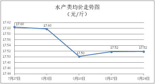 水產(chǎn)類商品價格升降互現(xiàn)。所監(jiān)測的9種水產(chǎn)商品價格波動情況為4漲4跌1平,綜合均價為每斤17.52元,環(huán)比上漲0.01%。其中:草魚、鯽魚、羅非魚、基圍蝦零售均價分別為每斤11.35元、14.33元、8.98元、29.38元,環(huán)比分別上漲0.27%、下降0.83%、上漲0.11%、下降0.37%。