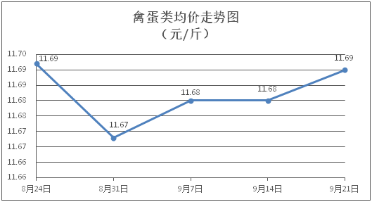 禽蛋類商品價(jià)格窄幅盤整。所監(jiān)測(cè)的5種禽蛋類商品價(jià)格波動(dòng)情況為2漲1跌2平,綜合零售均價(jià)為每斤11.69元,環(huán)比上漲0.09%。其中:白條雞、白條鴨零售均價(jià)分別為每斤20.80元、15.14元,環(huán)比分別下降0.05%、持平;雞蛋、鴨蛋零售均價(jià)分別為每斤6.38元、7.09元,環(huán)比分別上漲0.47%、上漲0.42%。