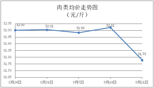 肉類商品價(jià)格小幅下降。所監(jiān)測(cè)的8種肉類商品價(jià)格波動(dòng)情況為2漲5跌1平,綜合零售均價(jià)為每斤31.78元,環(huán)比下降0.76%。其中:排骨、精瘦肉、牛肉、帶骨羊肉零售均價(jià)分別為每斤30.25元、18.99元、46.41元、40.08元,環(huán)比分別下降0.10%、下降0.11%、上漲0.11%、下降4.55%。