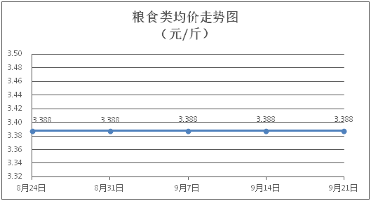 糧食類商品價(jià)格保持穩(wěn)定。所監(jiān)測(cè)的4種糧食類商品價(jià)格均持平,綜合零售均價(jià)為每斤3.388元。其中:絲苗米、面粉零售均價(jià)分別為每斤3.51元、3.39元,環(huán)比均持平。