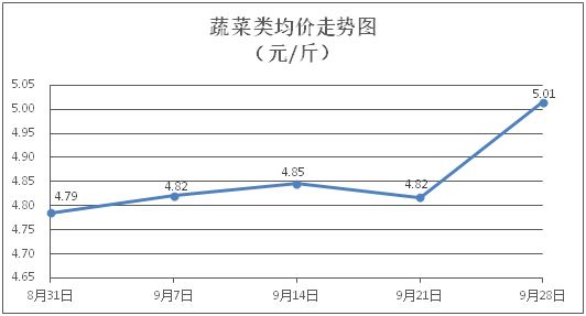 據(jù)本市21家農(nóng)貿(mào)市場監(jiān)測數(shù)據(jù)顯示,上周(9月22日至9月28日)市場上各類“菜籃子”商品供應(yīng)充足,所監(jiān)測的7大類“菜籃子”商品價格環(huán)比總體表現(xiàn)為3漲4跌。其中:糧油類商品價格穩(wěn)中有降,肉禽蛋類、水果類、水產(chǎn)類商品價格窄幅盤整,蔬菜類商品價格整體上漲。