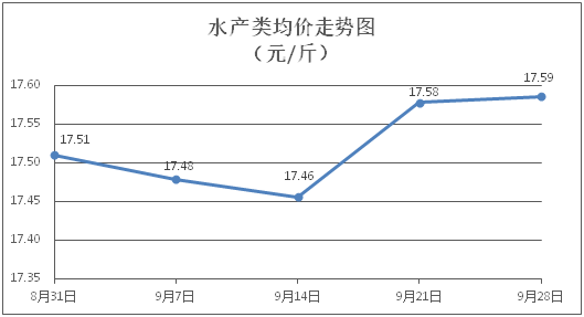 水產(chǎn)類商品價格小幅波動。所監(jiān)測的9種水產(chǎn)商品價格波動情況為3漲6跌,綜合均價為每斤17.59元,環(huán)比上漲0.04%。其中:黃花魚、鯽魚、鳙魚、基圍蝦零售均價分別為每斤26.58元、14.01元、10.88元、29.13元,環(huán)比分別上漲2.59%、下降0.36%、下降1.89%、上漲0.73%。