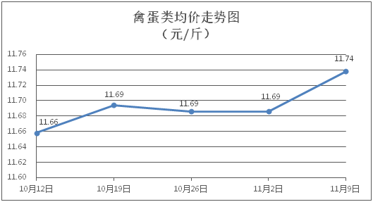 禽蛋類商品價格微幅上漲。所監(jiān)測的禽蛋類商品價格波動情況為4漲1跌,綜合零售均價為每斤11.74元,環(huán)比上漲0.44%。其中:白條雞、白條鴨零售均價分別為每斤20.92元、15.27元,環(huán)比分別上漲0.19%、上漲0.46%;雞蛋、咸鴨蛋零售均價分別為每斤6.38元、8.93元,環(huán)比分別下降0.16%、上漲0.45%。