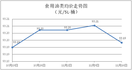 食用油類商品價格微幅波動。所監(jiān)測的食用油(5L裝)商品價格波動情況為4漲2跌3平,綜合零售均價為每桶93.19元,環(huán)比下降0.01%。其中:金龍魚花生油、金龍魚調(diào)和油零售均價分別為每桶100.67元、70.21元,環(huán)比分別上漲0.02%、下降0.44%。