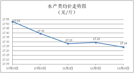 水產(chǎn)類商品價格窄幅盤降。所監(jiān)測的水產(chǎn)商品價格波動情況為4漲5跌,綜合均價為每斤17.24元,環(huán)比下降0.30%。其中:草魚、鯽魚、羅非魚、基圍蝦零售均價分別為每斤11.39元、13.83元、8.88元、28.38元,環(huán)比分別下降0.35%、下降1.14%、上漲0.23%、上漲0.21%。