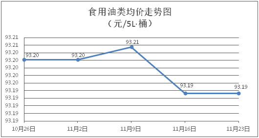 食用油類商品價格微幅盤整。所監(jiān)測的食用油(5L裝)商品價格波動情況為3漲2跌4平,綜合零售均價為每桶93.19元,環(huán)比持平。其中:金龍魚花生油、金龍魚調和油零售均價分別為每桶100.69元、70.19元,環(huán)比分別上漲0.02%、下降0.03%。