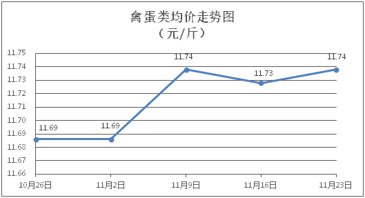 禽蛋類商品價格穩(wěn)中有漲。所監(jiān)測的禽蛋類商品價格波動情況為1漲4平,綜合零售均價為每斤11.74元,環(huán)比上漲0.24%。其中:白條雞、白條鴨零售均價分別為每斤20.95元、15.27元,環(huán)比分別上漲0.24%、持平;雞蛋、咸鴨蛋零售均價分別為每斤6.35元、8.93元,環(huán)比均持平。