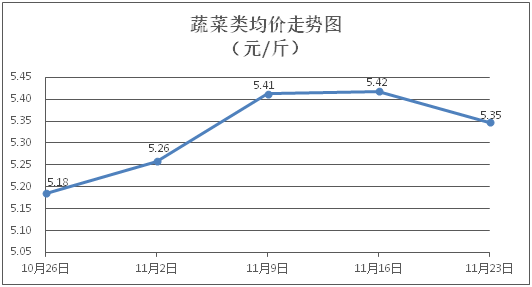 據(jù)本市21家農貿市場監(jiān)測數(shù)據(jù)顯示,上周(11月17日至11月23日)市場上各類“菜籃子”商品供應充足,所監(jiān)測的7大類“菜籃子”商品價格環(huán)比總體表現(xiàn)為2漲3跌2平。其中:糧油類商品價格基本平穩(wěn),肉禽蛋類價格微幅上漲,蔬果類、水產類商品價格有所下降。