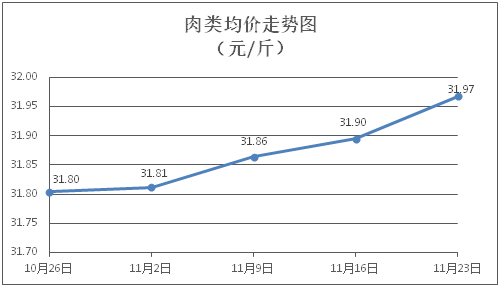 肉類商品價格微幅上漲。所監(jiān)測的肉類商品價格波動情況為7漲1平,綜合零售均價為每斤31.97元,環(huán)比上漲0.23%。其中:排骨、精瘦肉、牛肉、帶骨羊肉零售均價分別為每斤30.21元、18.40元、46.96元、41.35元,環(huán)比分別上漲0.13%、上漲0.22%、上漲0.11%、上漲0.85%。