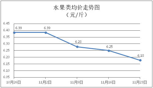 水果類商品價格小幅下降。所監(jiān)測的水果商品價格波動情況為4跌2平,綜合零售均價為每斤6.18元,環(huán)比下降1.15%。其中橙子、香蕉、梨零售均價分別為每斤6.49元、2.73元、5.20元,環(huán)比分別下降3.57%、持平、下降1.52%。