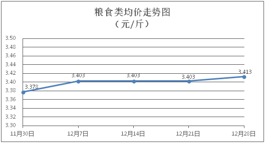 糧食類商品價格穩(wěn)中有漲。所監(jiān)測的糧食類商品價格波動情況為1漲3平,綜合零售均價為每斤3.413元,環(huán)比上漲0.29%。其中:絲苗米、面粉零售均價分別為每斤3.54元、3.38元,環(huán)比分別持平、上漲1.20%。