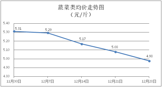 據(jù)本市21家農(nóng)貿(mào)市場監(jiān)測數(shù)據(jù)顯示,上周(12月22日至12月28日)市場上各類“菜籃子”商品供應充足,所監(jiān)測的7大類“菜籃子”商品價格環(huán)比總體表現(xiàn)為3漲4跌。其中:糧油類、水產(chǎn)類商品價格總體略漲,肉禽蛋類、蔬果類商品價格略有下降。