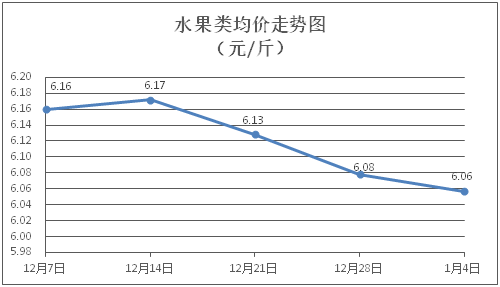 水果類商品價格總體微降。所監(jiān)測的水果商品價格波動情況為2漲3跌1平,綜合零售均價為每斤6.06元,環(huán)比下降0.36%。其中橙子、蘋果、香蕉零售均價分別為每斤5.83元、7.95元、2.79元,環(huán)比分別下降0.51%、下降0.50%、上漲0.72%。