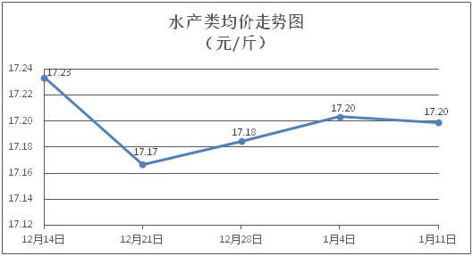 水產(chǎn)類商品價格窄幅盤整。所監(jiān)測的水產(chǎn)商品價格波動情況為2漲2跌5平,綜合均價為每斤17.20元,環(huán)比下降0.03%。其中:草魚、鯽魚、羅非魚、基圍蝦零售均價分別為每斤11.46元、13.86元、8.81元、28.04元,環(huán)比分別持平、下降0.50%、上漲0.46%、下降0.14%。