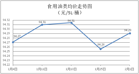 食用油類商品價(jià)格穩(wěn)中微漲。所監(jiān)測(cè)的食用油(5L裝)商品價(jià)格波動(dòng)情況為3漲6平,綜合零售均價(jià)為每桶94.29元,環(huán)比上漲0.04%。其中:金龍魚花生油、金龍魚調(diào)和油零售均價(jià)分別為每桶100.19元、70.74元,環(huán)比分別上漲0.18%、上漲0.07%。