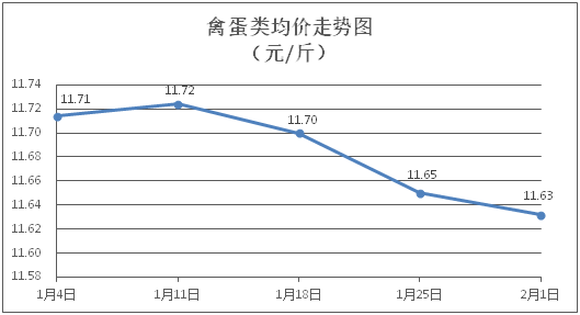 禽蛋類商品價(jià)格穩(wěn)中略降。所監(jiān)測(cè)的禽蛋類商品價(jià)格波動(dòng)情況為3跌2平,綜合零售均價(jià)為每斤11.63元,環(huán)比下降0.15%。其中:白條雞、白條鴨零售均價(jià)分別為每斤20.78元、15.26元,環(huán)比分別持平、下降0.33%;雞蛋、咸鴨蛋零售均價(jià)分別為每斤6.33元、8.82元,環(huán)比分別下降0.31%、持平。