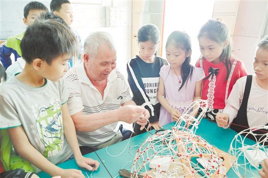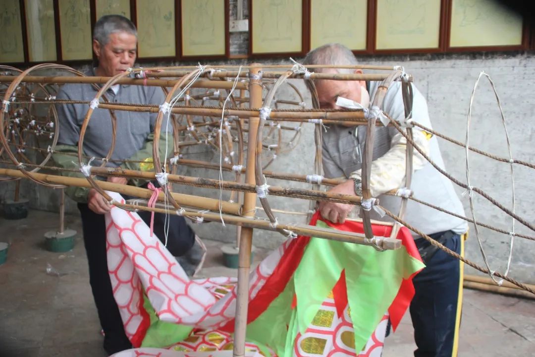 紗龍龍會(huì)師傅李振圖向?qū)W生傳授紗龍制作和舞龍技藝