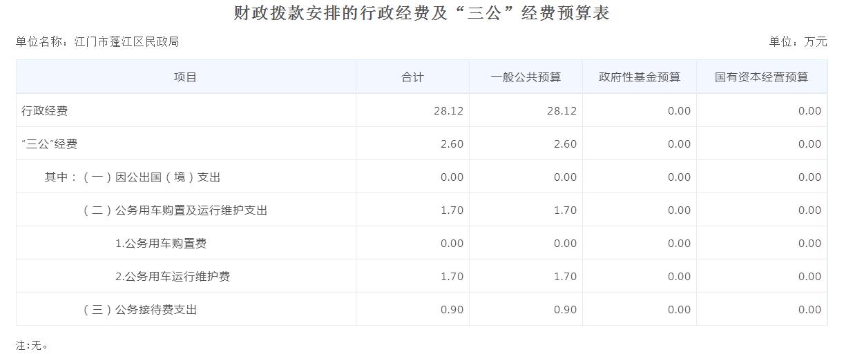 2024年江門市蓬江區(qū)民政局三公經(jīng)費預算公開