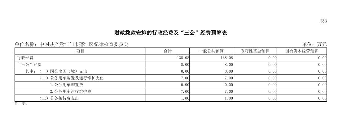 2024年中國共產黨江門市蓬江區(qū)紀律檢查委員會部門預算 “三公”經費公開
