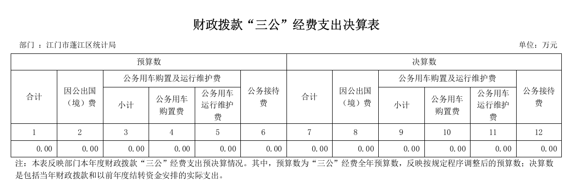 2023年江門市蓬江區(qū)統(tǒng)計局“三公”經(jīng)費決算公開