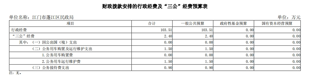 2025年江門市蓬江區(qū)民政局“三公”經(jīng)費預算公開
