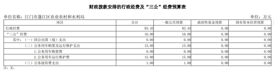 2025年江門市蓬江區(qū)農(nóng)業(yè)農(nóng)村和水利局部門預(yù)算“三公”經(jīng)費(fèi)公開