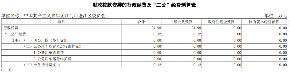 2025年中國共產(chǎn)主義青年團江門市蓬江區(qū)委員部門預算“三公”經(jīng)費公開