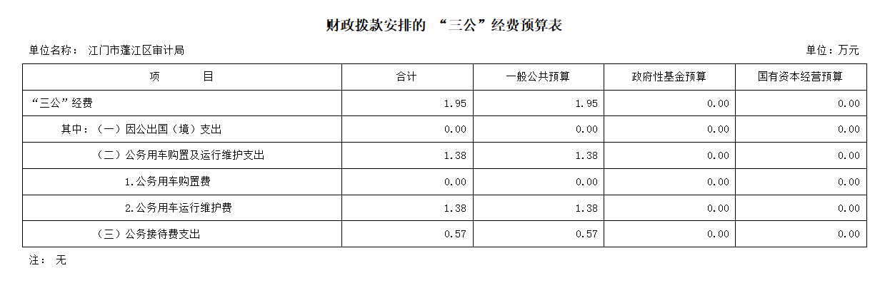 2025年江門市蓬江區(qū)審計(jì)局“三公”經(jīng)費(fèi)預(yù)算公開