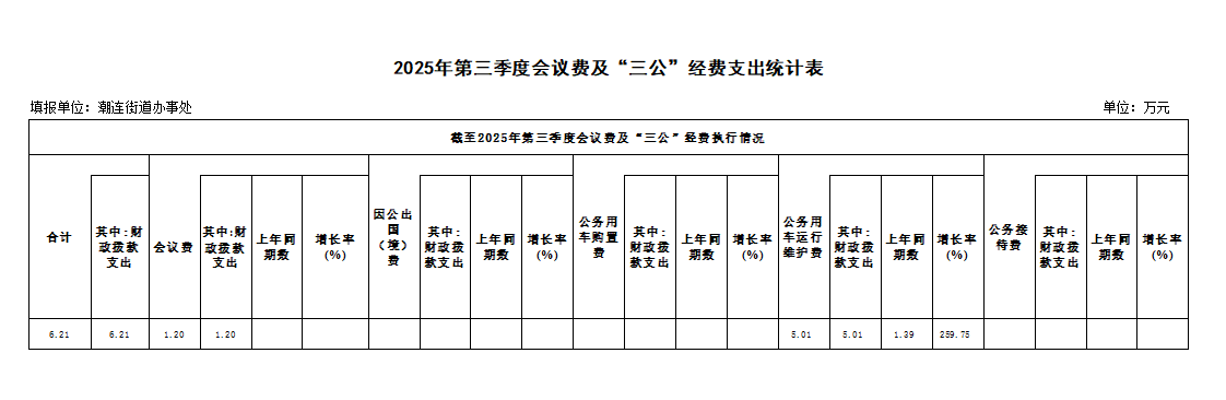 潮連街2025年第三季度會議費及“三公”經(jīng)費支出統(tǒng)計表