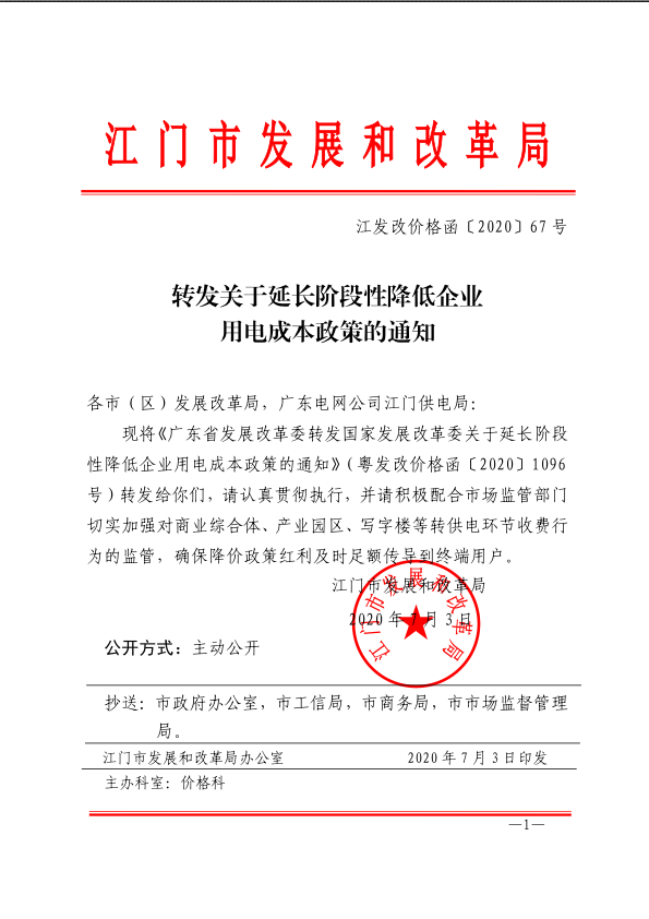 轉(zhuǎn)發(fā)關(guān)于延長(zhǎng)階段性降低企業(yè)用電成本政策的通知