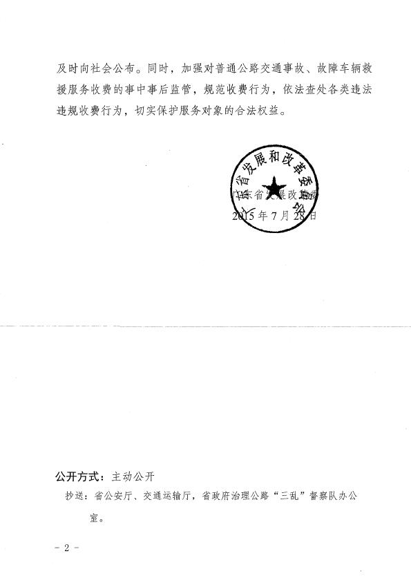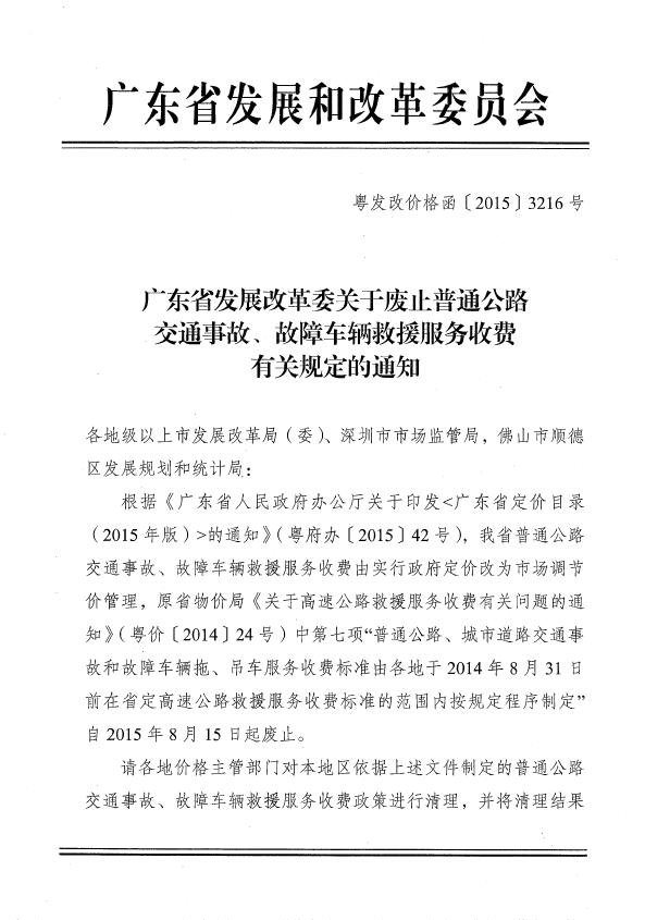 廣東省發(fā)展改革委關(guān)于廢止普通公路交通事故、故障車輛救援服務(wù)收費 江發(fā)改費管[2015]0702號