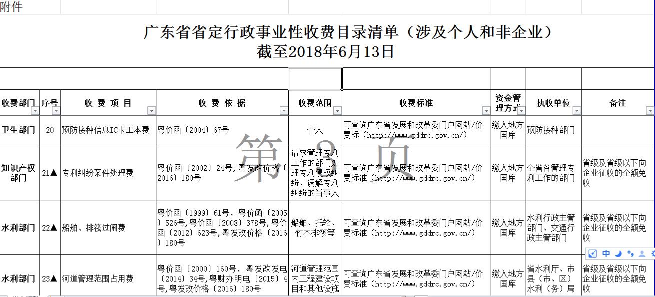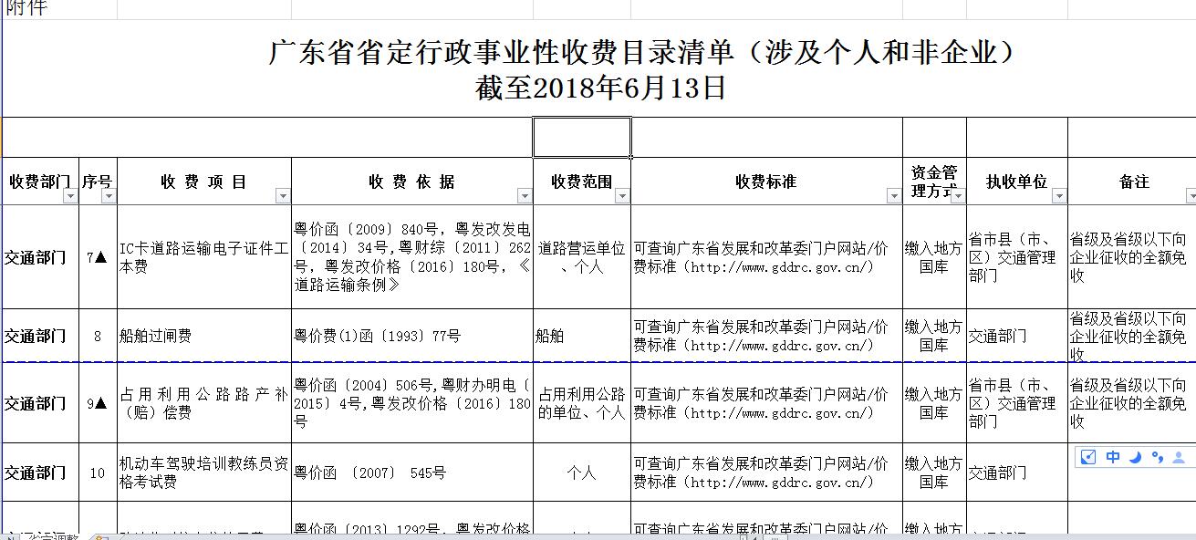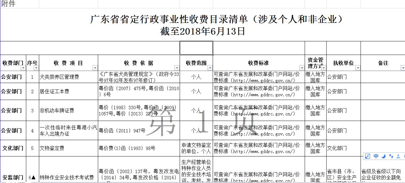 廣東省省定行政事業(yè)性收費(fèi)目錄清單(涉及個人和非企業(yè))