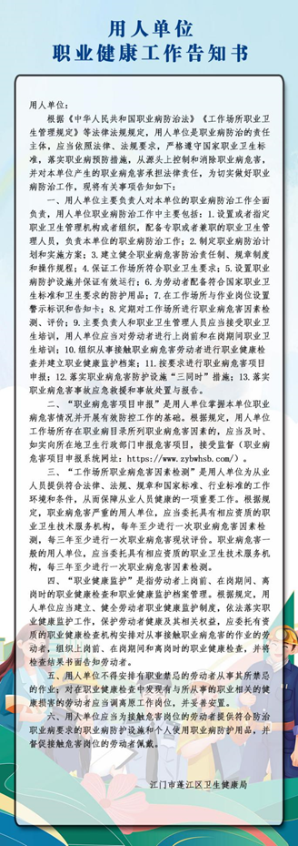 職業(yè)健康事關(guān)億萬(wàn)勞動(dòng)者及其家庭的幸福安康,守護(hù)職業(yè)健康功在當(dāng)代,利在千秋。自2003年以來(lái),國(guó)家將每年4月的最后一周定為全國(guó)《職業(yè)病防治法》宣傳周,持續(xù)推動(dòng)我國(guó)職業(yè)健康事業(yè)發(fā)展。2024年4月25日至5月1日是第22個(gè)《職業(yè)病防治法》宣傳周,今年的主題是“ 堅(jiān)持預(yù)防為主,守護(hù)職業(yè)健康”,聚焦提升勞動(dòng)者職業(yè)健康素養(yǎng)水平和保障勞動(dòng)者職業(yè)健康權(quán)益,普及職業(yè)病防治和職業(yè)健康知識(shí),進(jìn)一步推動(dòng)落實(shí)用人單位職業(yè)病防治主體責(zé)任,切實(shí)保障廣大勞動(dòng)者職業(yè)健康權(quán)益。