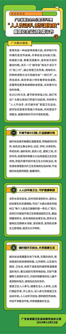 當(dāng)前正值冬季,蚊蟲活動能力弱、抵御能力差、聚集范圍集中,是防蚊滅蚊的最佳時期,消滅一只“越冬蚊”相當(dāng)于消滅千只“蚊二代”。廣東省愛衛(wèi)辦發(fā)出開展“人人齊動手,殺滅越冬蚊”愛國衛(wèi)生運(yùn)動倡議書,呼吁廣大群眾積極行動起來,通過清理衛(wèi)生死角、清除積水、藥物噴灑等方法,將越冬蚊“一網(wǎng)打盡”,提早防控登革熱等媒介傳染病,共同營造干凈整潔、健康祥和的節(jié)日環(huán)境和氛圍。