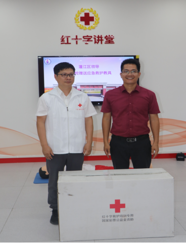 儀式當(dāng)天,廣東省紅十字會(huì)黨組成員、副會(huì)長(zhǎng)曾毅和江門市紅十字會(huì)黨組書記、常務(wù)副會(huì)長(zhǎng)黃集文鄭重地將“鑰匙”交到紫茶中學(xué)代表手中,傳遞守護(hù)生命的重任。蓬江區(qū)人民政府副區(qū)長(zhǎng)、區(qū)紅十字會(huì)會(huì)長(zhǎng)利錦波向紫茶中學(xué)贈(zèng)送模擬人等應(yīng)急救護(hù)教具,這些教具將成為師生們學(xué)習(xí)應(yīng)急救護(hù)技能的得力助手,幫助他們更好地掌握實(shí)用的急救本領(lǐng),讓應(yīng)急救護(hù)知識(shí)惠及更多人。