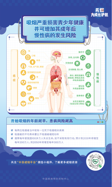 科學(xué)研究表明,吸煙和二手煙暴露可導(dǎo)致癌癥、心血管疾病、呼吸系統(tǒng)疾病等多種健康問題。為了我們自己、家人和社會的健康,我們倡議: