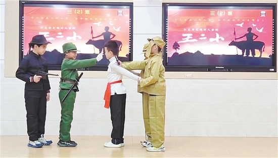 江門日?qǐng)?bào)訊 (文/圖 記者/潘詩欣 通訊員/陳淑晶) “牛啊牛啊吃青草,二小我呀來放哨”“我要堅(jiān)守崗位,提高警惕”……近日,在蓬江區(qū)棠下鎮(zhèn)桐井小學(xué)舉辦的影視思政系列活動(dòng)中,三(2)班帶來節(jié)目《王二小》,精彩的表演讓觀眾們沉浸在跌宕起伏的劇情中,無法挪開眼睛。