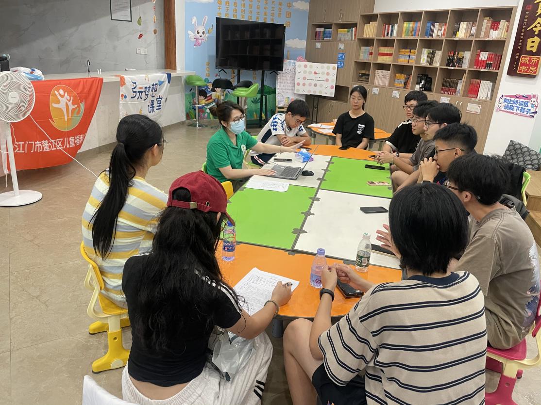社工與大學(xué)生志愿者隊(duì)伍進(jìn)行課程研討