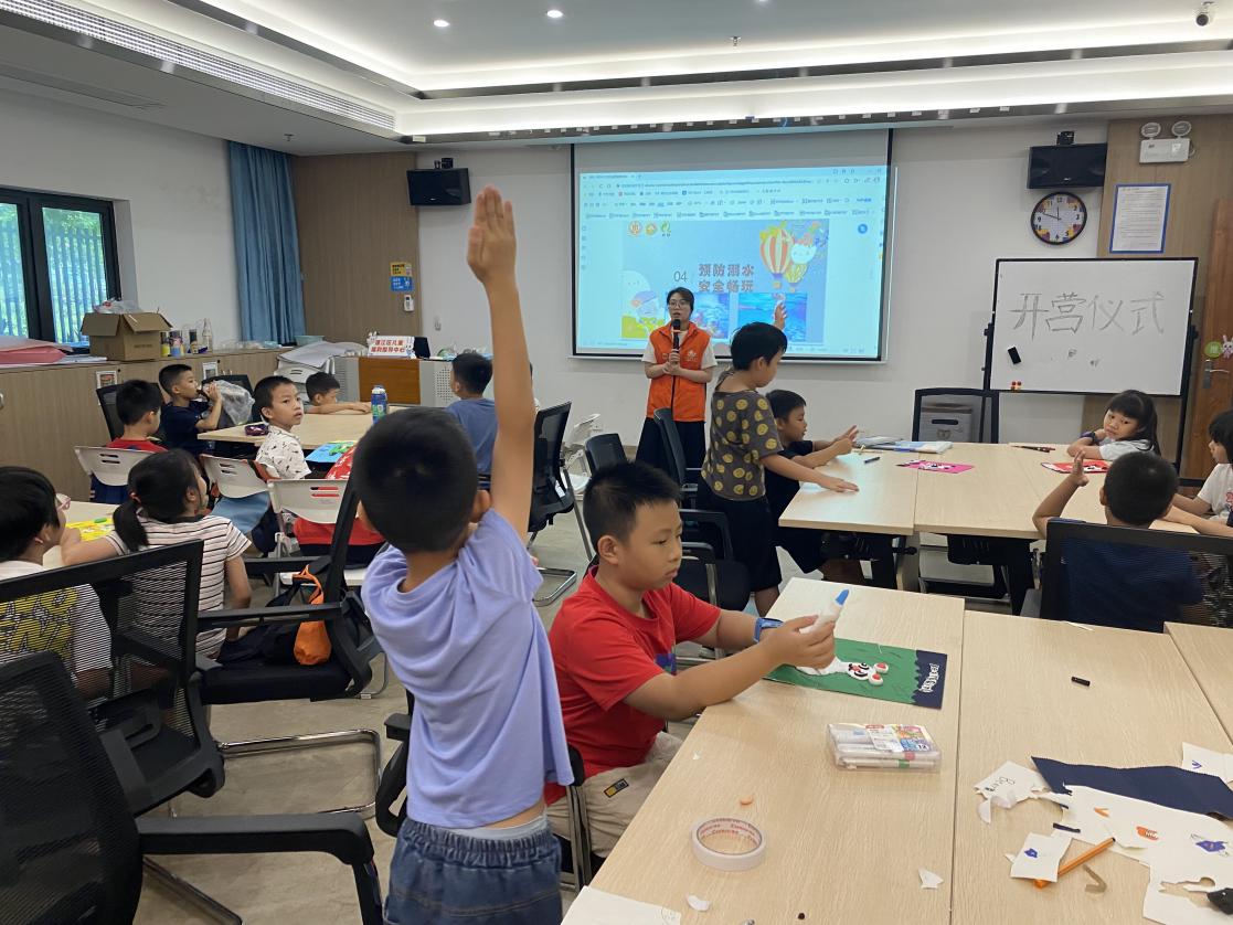 在社工的組織與帶領(lǐng)下,志愿者團(tuán)隊(duì)各自設(shè)計(jì)出4個(gè)安全主題的夏令營(yíng)課程。其中,在防溺水主題中,志愿者通過(guò)知識(shí)短講、情景模擬題以及快問(wèn)快答等趣味方式,向兒童講解如何防溺水、如何自救,引導(dǎo)兒童做到防溺“六不要”,讓兒童在輕松愉快的氛圍中學(xué)習(xí)知識(shí)。