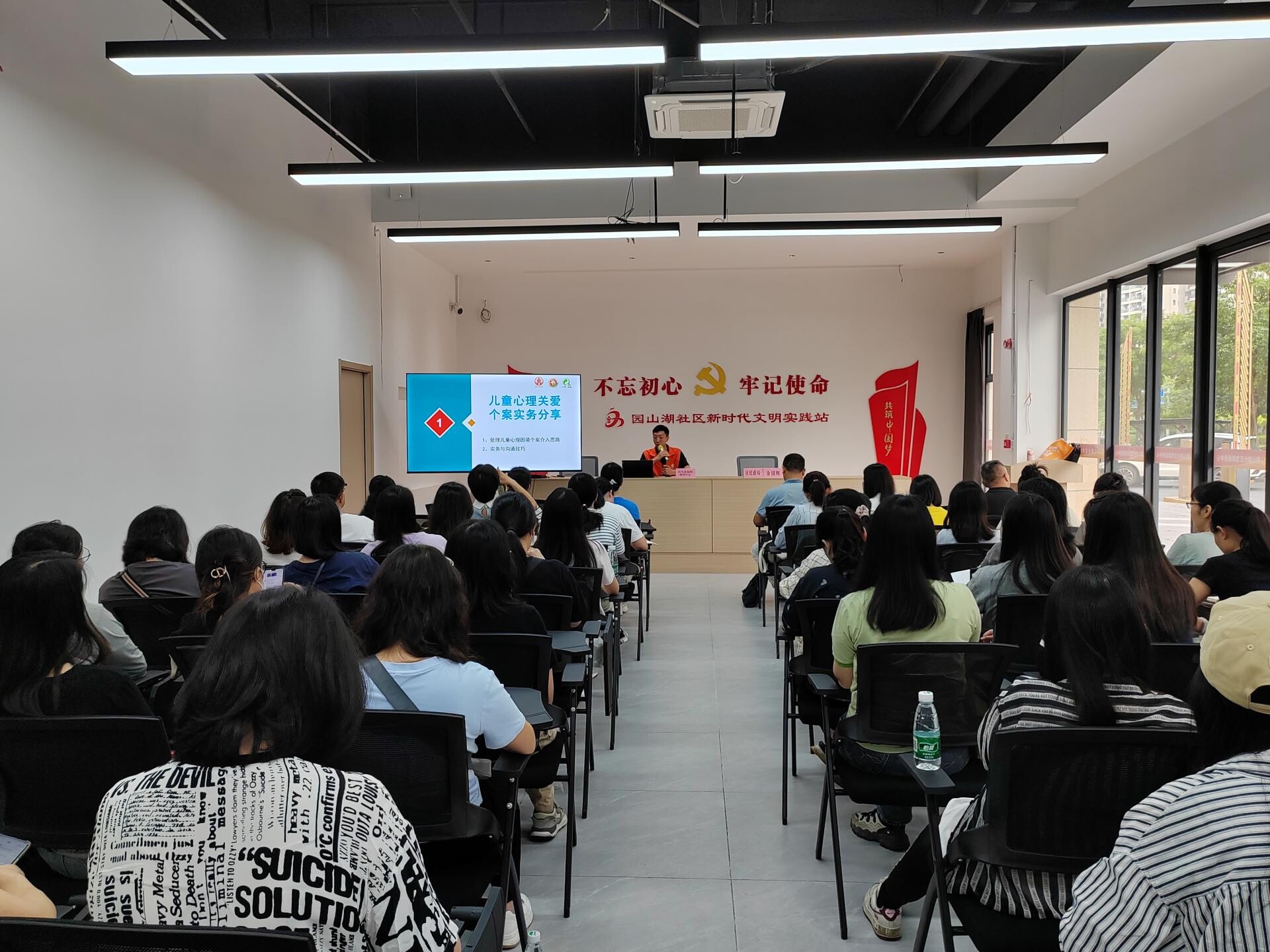 隨后,蓬江區(qū)兒童福利指導(dǎo)中心社工陳偉業(yè)聚焦困境兒童心理個(gè)案服務(wù)的策略,結(jié)合豐富的專業(yè)實(shí)務(wù)經(jīng)驗(yàn),圍繞兒童社區(qū)工作者的職業(yè)優(yōu)勢,重點(diǎn)講解如何采取系統(tǒng)化、聯(lián)動(dòng)介入的服務(wù)干預(yù)模式,包括如何識(shí)別與調(diào)動(dòng)兒童的正向資源以緩解心理危機(jī)、如何與兒童、家長建立支持性的服務(wù)關(guān)系等干預(yù)技巧,防范兒童風(fēng)險(xiǎn)事件。