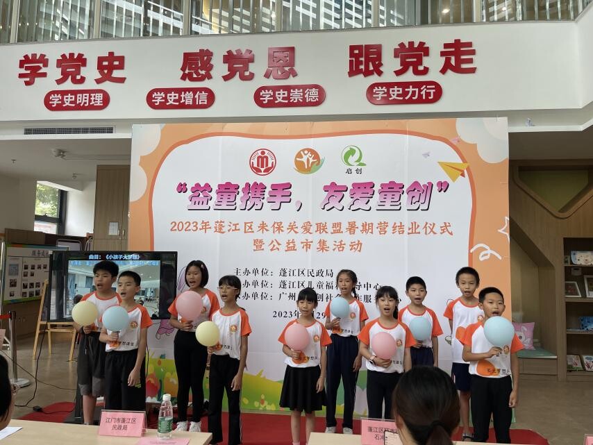 今年7月至8月期間,在蓬江區(qū)民政局的指導(dǎo)下,蓬江區(qū)兒童福利指導(dǎo)中心結(jié)合全年“六個(gè)一”的目標(biāo),在暑期時(shí)間節(jié)點(diǎn)中以“一個(gè)多彩暑假”為中心,聯(lián)合多個(gè)友好聯(lián)盟單位,共同開展“益童攜手,友愛童創(chuàng)”2023年關(guān)愛聯(lián)盟暑期夏令營,通過創(chuàng)設(shè)親子、兒童青少年互動(dòng)的平臺(tái),豐富他們的暑期生活,為孩子們送上一個(gè)安全、快樂的暑假。下面,讓我們一同回顧在結(jié)營儀式上有什么精彩內(nèi)容!