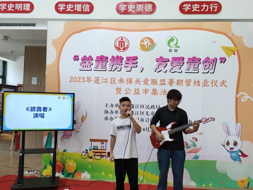 “益童攜手,友愛童創(chuàng)”2023年蓬江區(qū)關(guān)愛聯(lián)盟夏令營結(jié)合思想引領(lǐng)、安全教育、心理健康、素質(zhì)發(fā)展、社會(huì)共融等五大主題,聯(lián)合多方社會(huì)力量,開展暑期活動(dòng)共44場(chǎng)次,服務(wù)兒童超過600人次。8月29日結(jié)營儀式當(dāng)天,一批參與活動(dòng)的兒童、志愿者為我們提供了合唱演出、樂器演奏、成果展示、游戲活動(dòng)等環(huán)節(jié)內(nèi)容,并邀請(qǐng)社會(huì)各界一同參與,共同見證兒童的成長(zhǎng)。